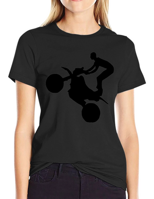 Black Graphic Tee - Motorcycle Stunt Silhouette Design