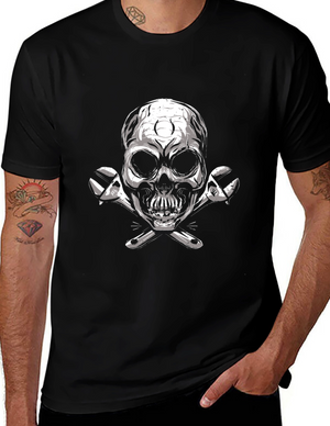 Skull & Wrenches Graphic Tee - Black Crew Neck T-Shirt