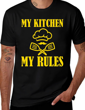 BBQ King Black T-Shirt with Flame and Utensil Design