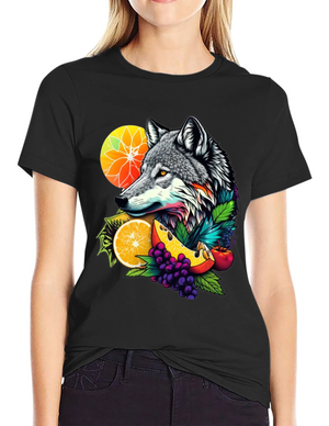 Wolf & Fruit Graphic Tee - Stylish Mens Black T-Shirt