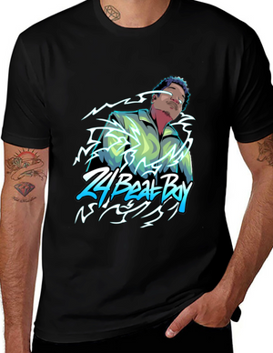 24 Beat Boy Graphic T-Shirt - Stylish Black Tee