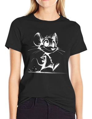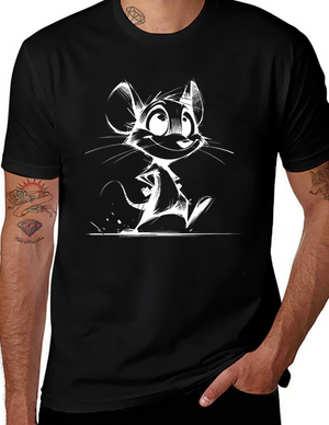 Whimsical Cartoon Mouse Graphic Tee - Black