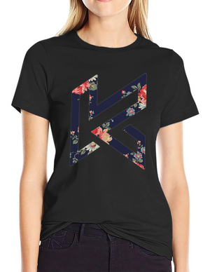 Floral K Black Tee - Stylish Geometric Design