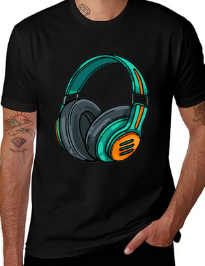 Stylish Black T-Shirt with Cool Headphone Graphic