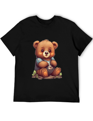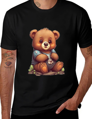 Neon Teddy Bear Graphic Tee - Black Cotton T-Shirt