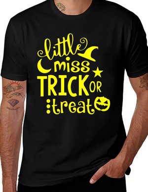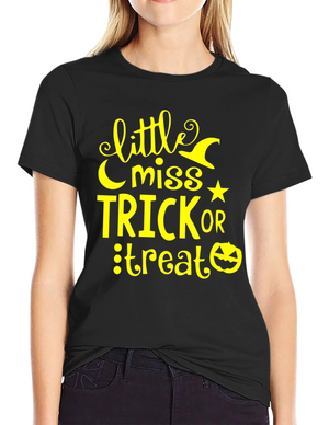 Little Miss Trick or Treat Black Halloween T-Shirt