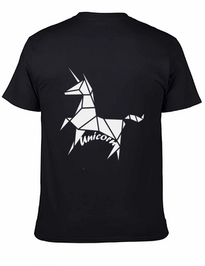 Geometric Unicorn Graphic Tee - Black Cotton Casual Shirt