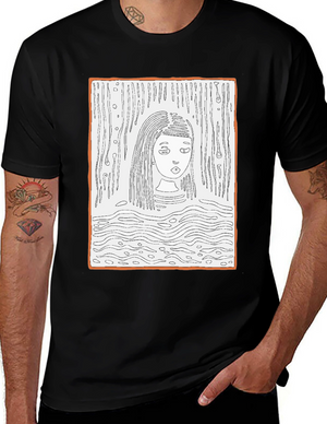 Artistic Water Portrait Graphic Tee - Unisex Black T-Shirt