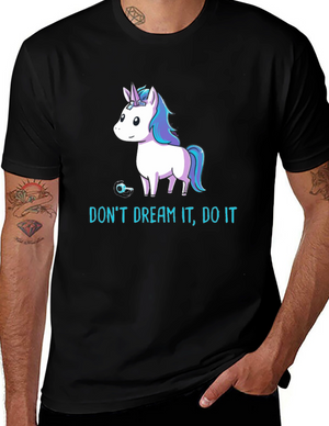 Unicorn Cartoon Graphic Tee - Black Unisex T-Shirt