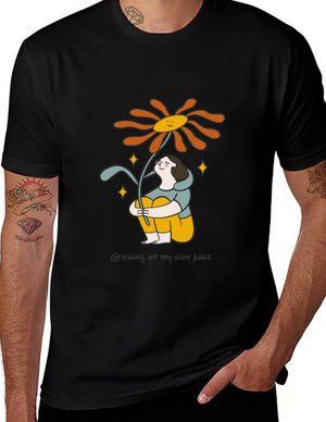Unique Graphic T-Shirt with Smiling Sunflower Design