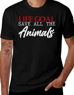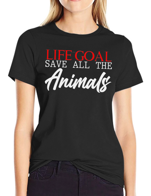 Life Goal Save All The Animals Black Graphic T-Shirt