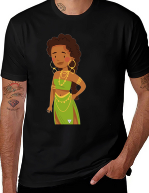 Cartoon Woman Graphic Black T-Shirt