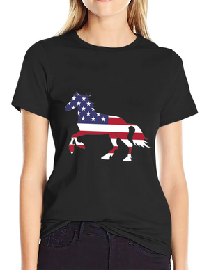 American Flag Horse Happy 4th Of July Classic Cotton Tee – Unisex Comfort For Any Season