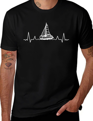 Sailboat Heartbeat Graphic T-Shirt - Nautical Style
