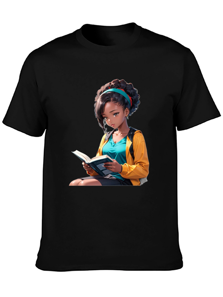 Show off your love for anime with this stylish black t-shirt! The shirt features a vibrant graphic of an anime girl engrossed in a book, making it perfect for bookworms and anime enthusiasts alike. This tee is made from a comfortable and breathable material. The unique design is sure to turn heads and spark conversations. Ideal for casual wear, conventions, or as a gift for the anime lover in your life. Grab yours today and showcase your passion!
