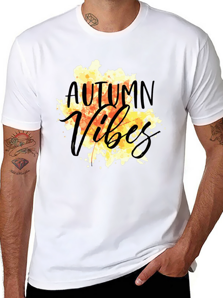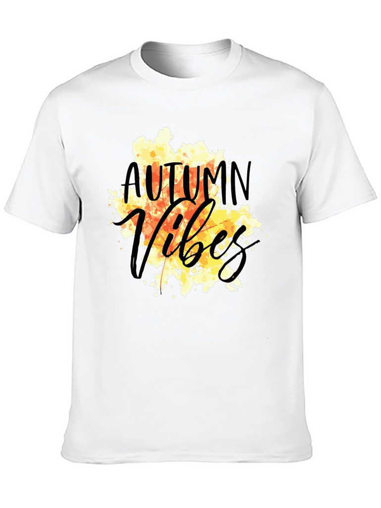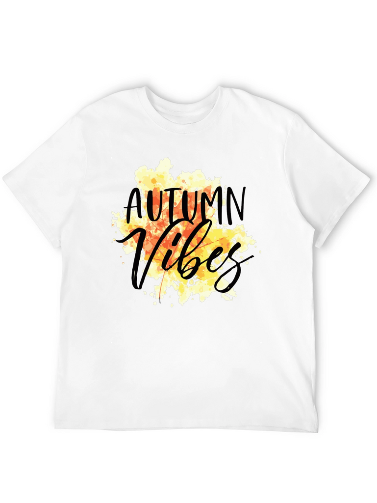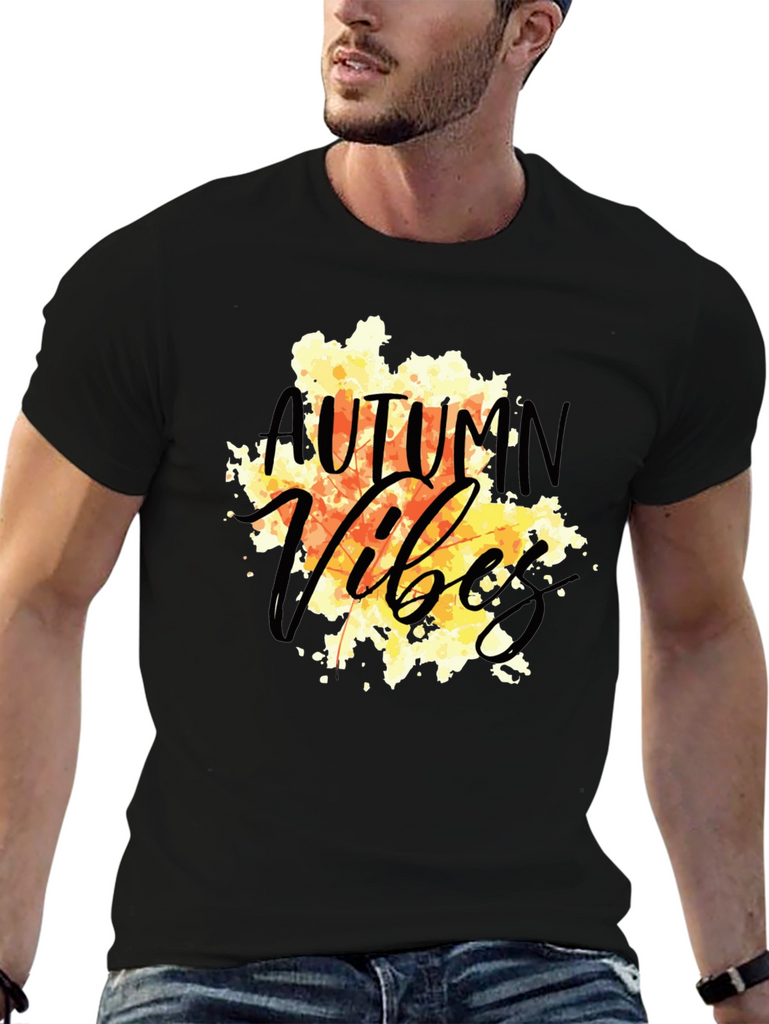 Embrace the autumn season with this stylish black t-shirt. The design features a vibrant, watercolor-style graphic with the words "Autumn Vibes" in a playful, script font. The warm tones of orange, yellow, and brown evoke the cozy feelings of fall. Made from a comfortable, breathable fabric, this tee is perfect for everyday wear. Pair it with jeans or leggings for a casual yet fashionable look. Ideal for pumpkin patch visits, hayrides, or simply enjoying the crisp autumn air. Show off your love for the season with this unique and eye-catching t-shirt.