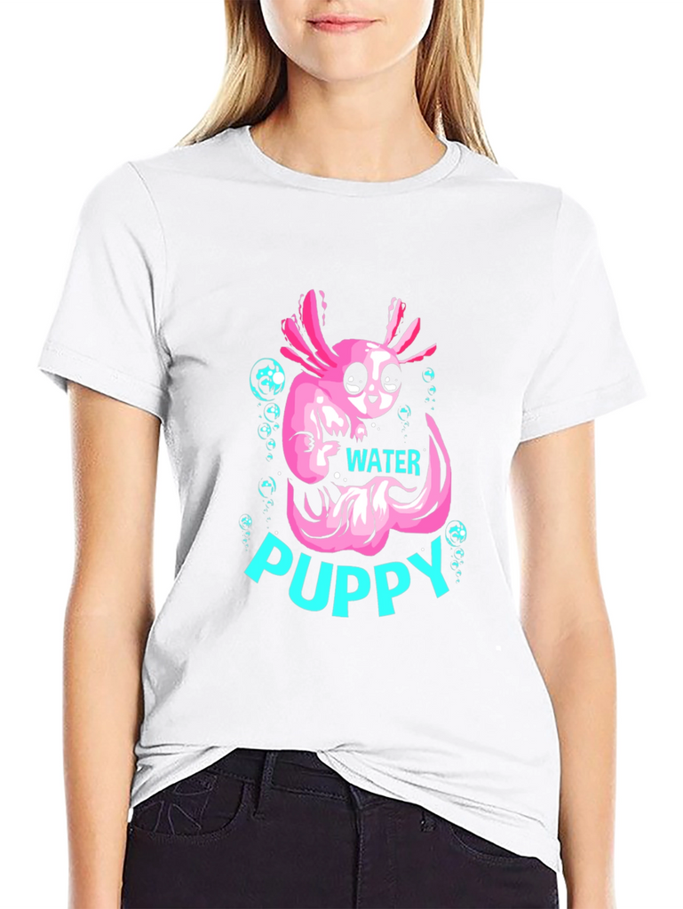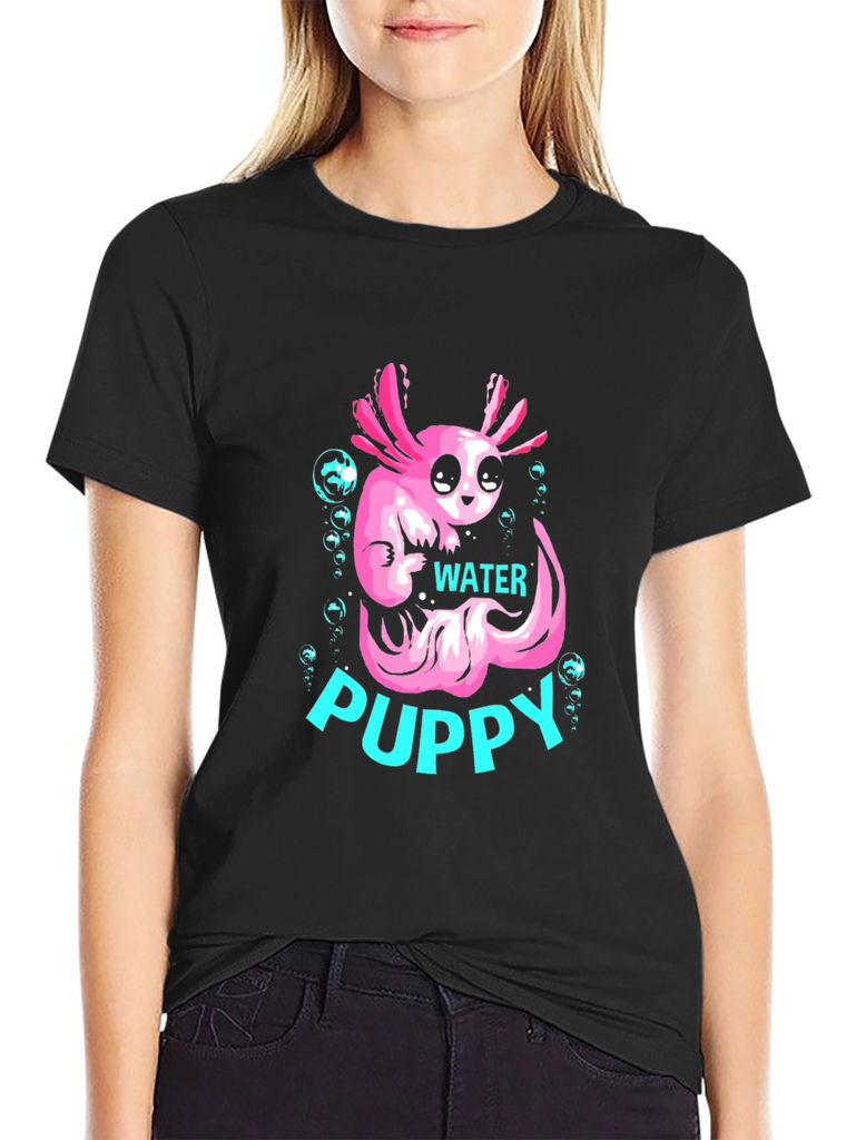 Show off your love for axolotls with this unique black t-shirt! Featuring a vibrant, playful graphic of a pink axolotl surrounded by bubbles, and the words "Water Puppy," this tee is sure to make a splash. The design is printed on a classic black tee. Perfect for casual wear, animal lovers, or anyone looking to add a fun piece to their wardrobe. This t-shirt combines comfort and style, making it a great gift for yourself or a friend. Get yours today and let your axolotl pride shine!