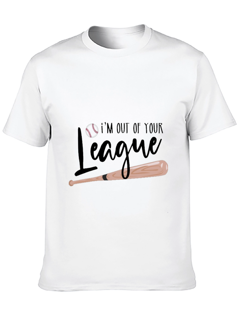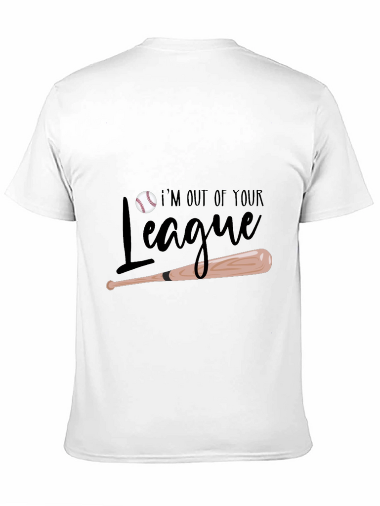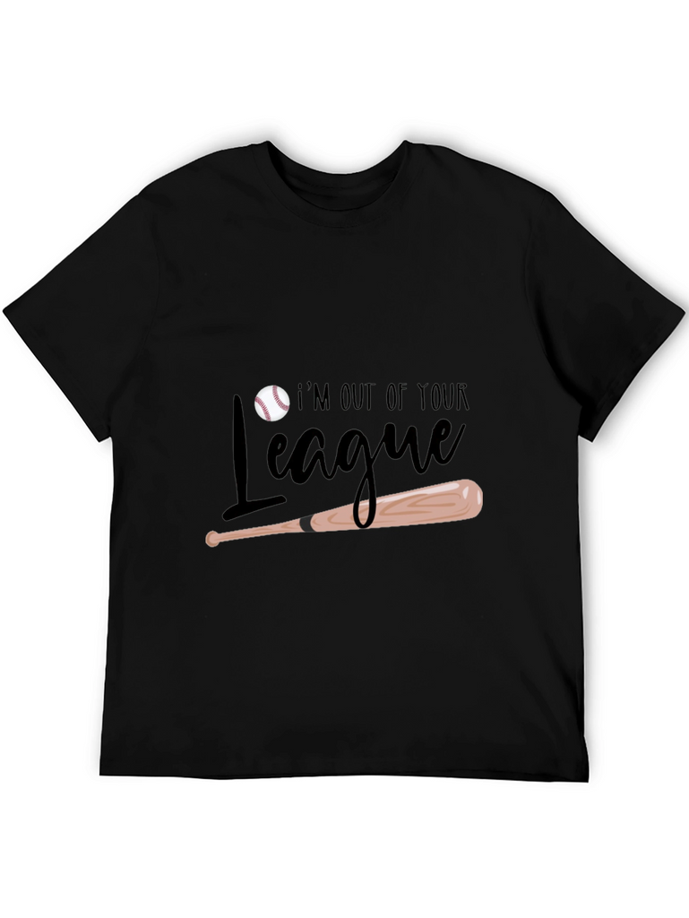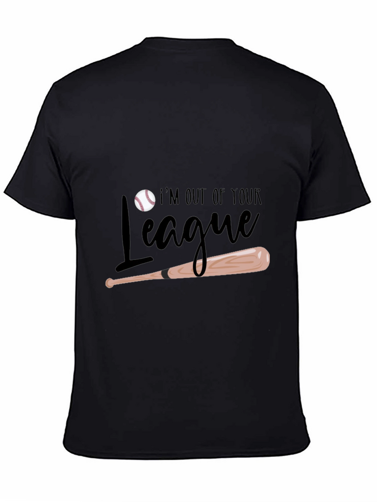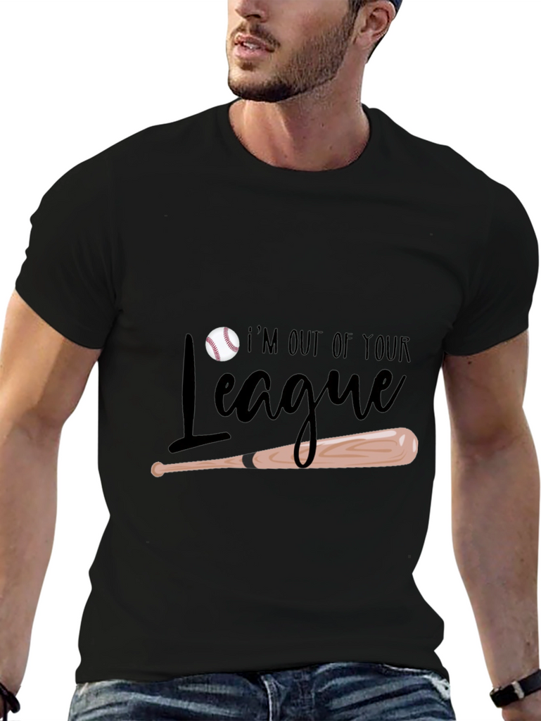 Show off your baseball prowess with this stylish black t-shirt! Featuring a playful design with a baseball and bat, along with the saying "I'm Out of Your League." This tee is perfect for baseball enthusiasts and anyone who wants to express their confidence. Made from comfortable materials, it's ideal for casual wear, sports events, or hanging out with friends. This shirt is sure to turn heads. Get yours today and let everyone know you're in a league of your own!