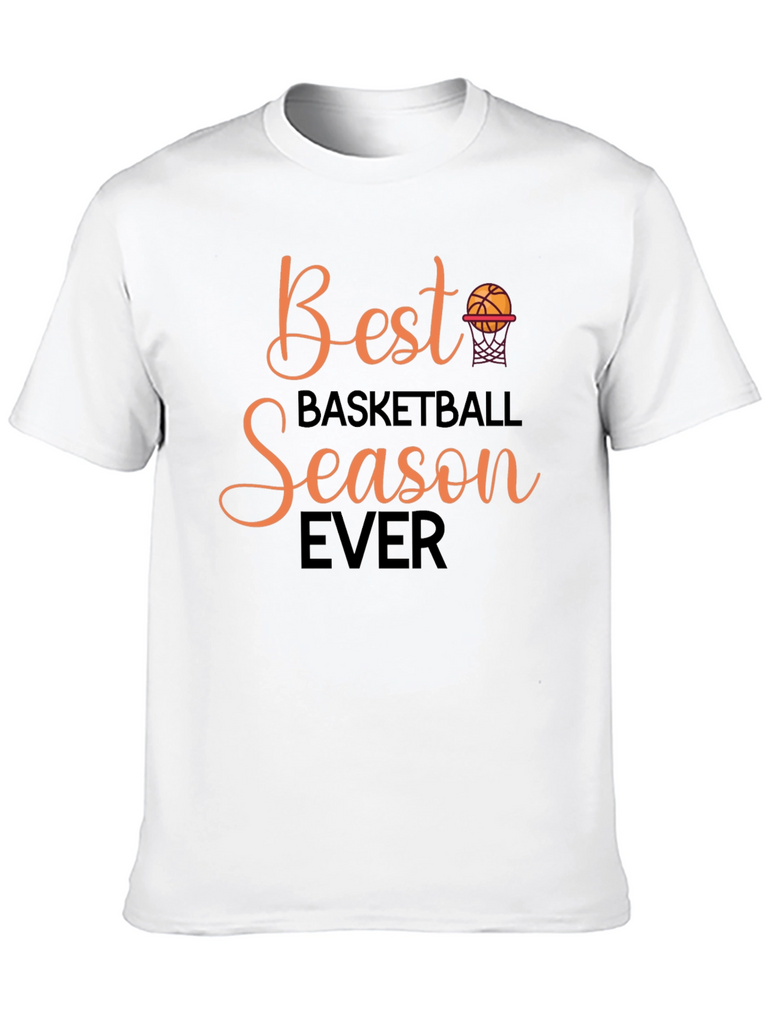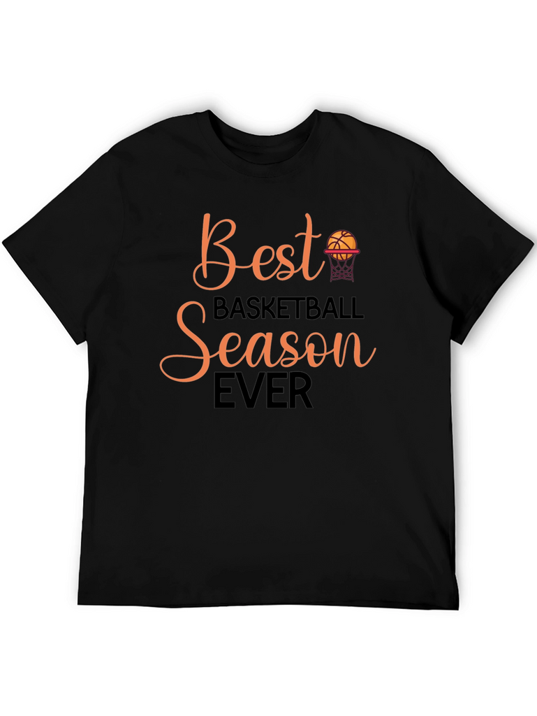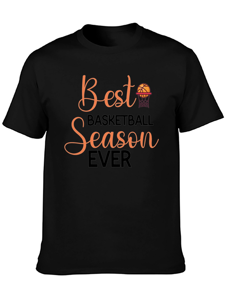 Show your love for basketball with this stylish black graphic tee. Featuring the phrase "Best Basketball Season Ever" in a fun, cursive font with a basketball hoop design, this shirt is perfect for players and fans alike. The soft fabric ensures comfort, while the bold graphic makes a statement. Ideal for casual wear, sporting events, or even as a gift for the basketball enthusiast in your life. Get ready to celebrate every slam dunk and three-pointer in style!