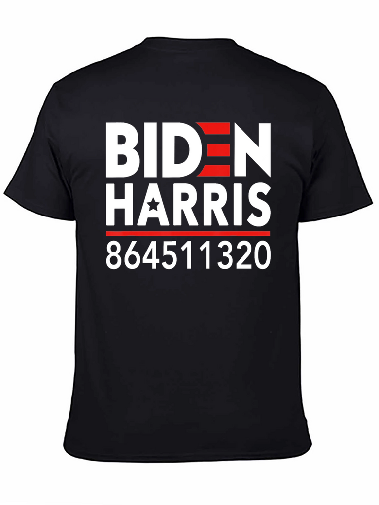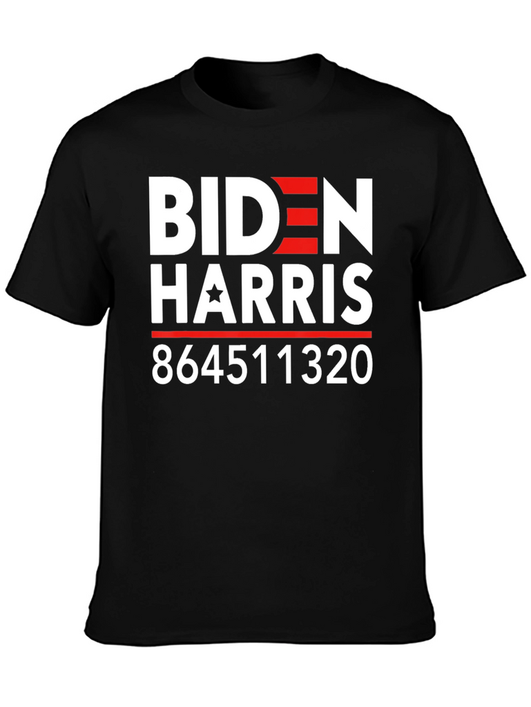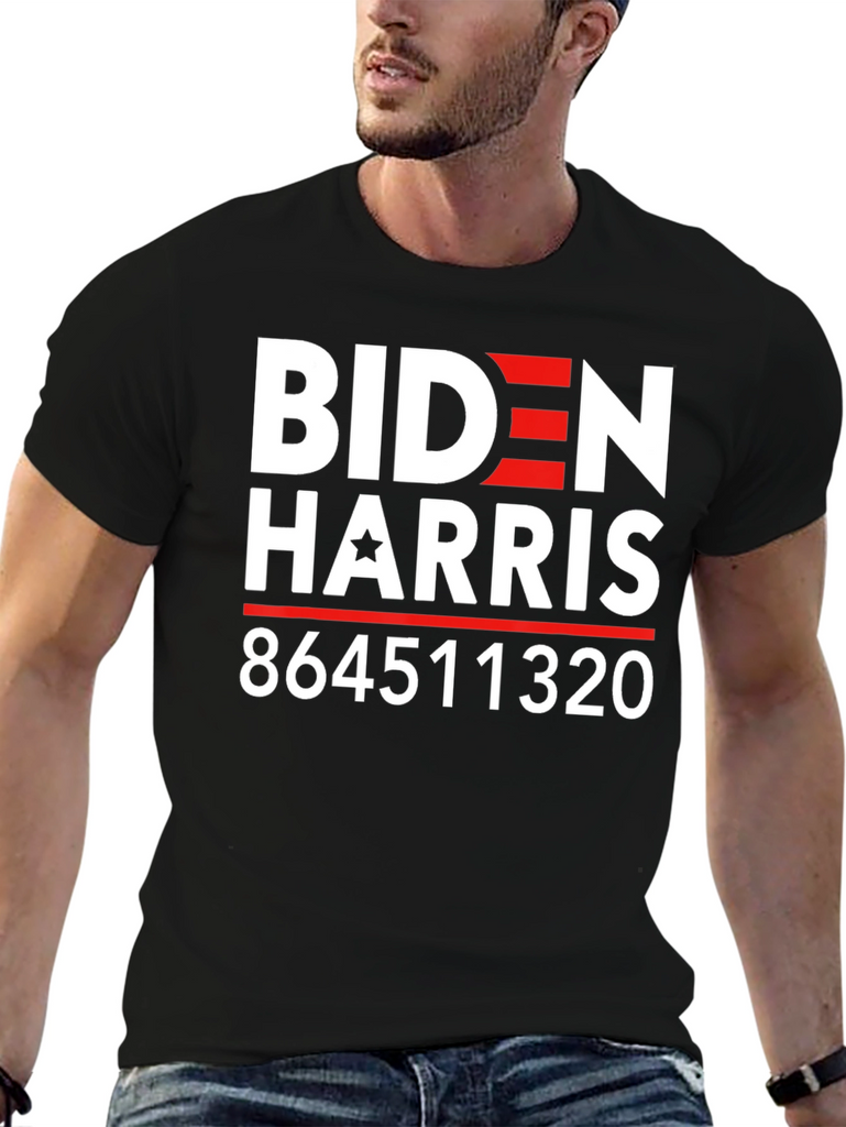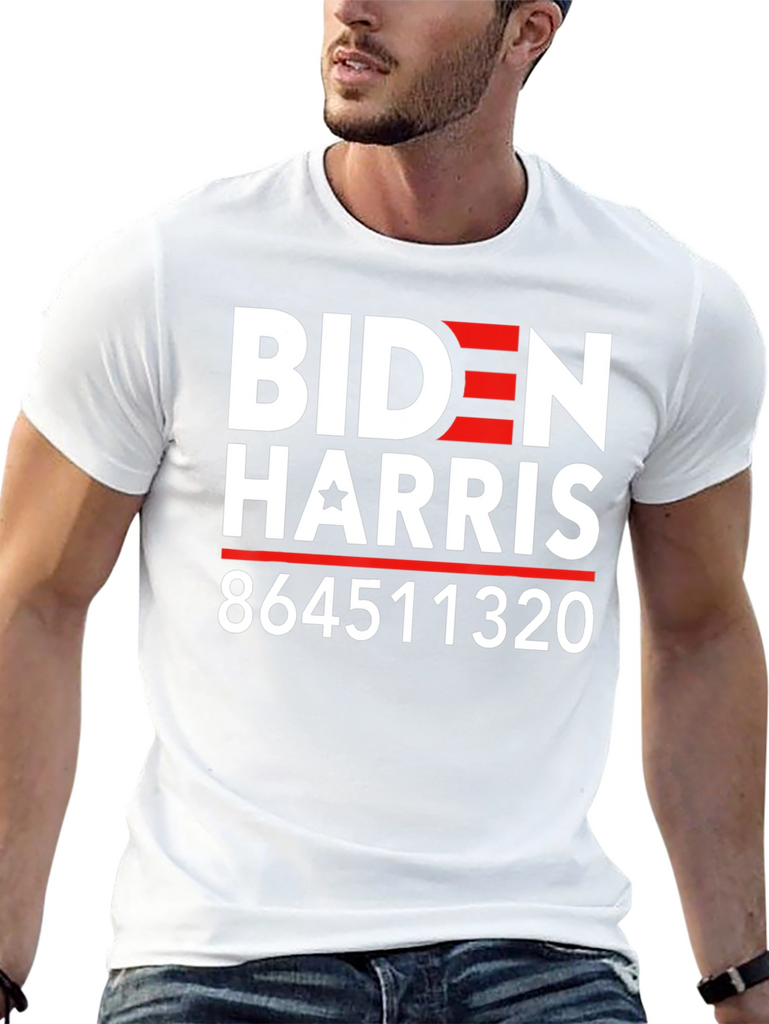 Show your support with this political t-shirt featuring a bold design with the words "Biden Harris" in a clear, impactful font. The design incorporates red stripes that accentuate the text. Made from comfortable materials ideal for everyday wear. This eye-catching t-shirt is perfect for rallies, events, or casual wear. Makes a statement wherever you go. The shirt showcases your political allegiance with style and is sure to spark conversation.