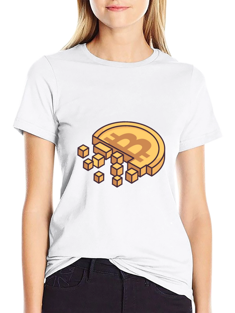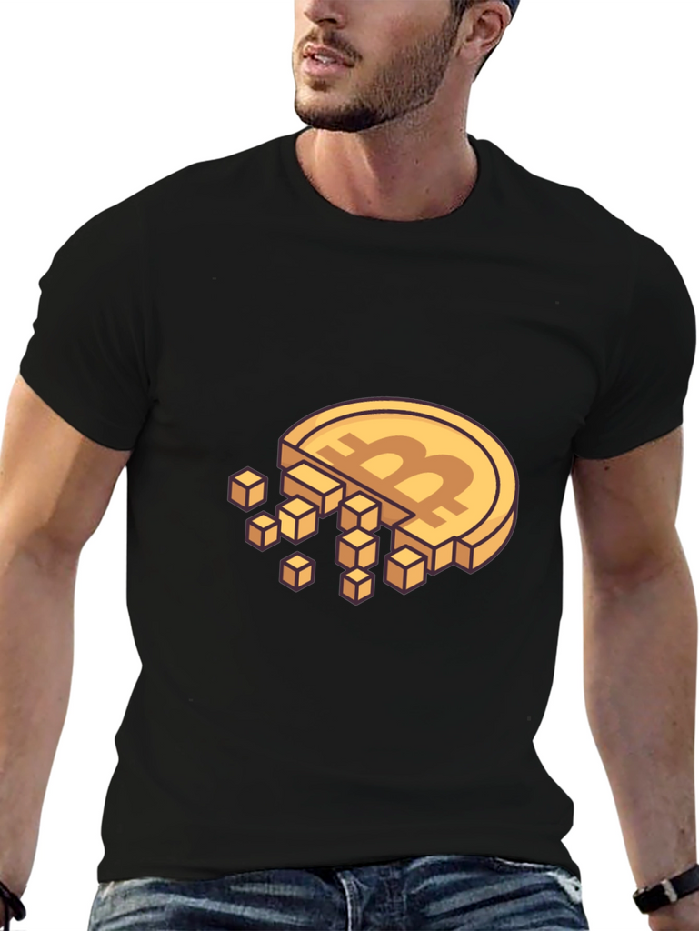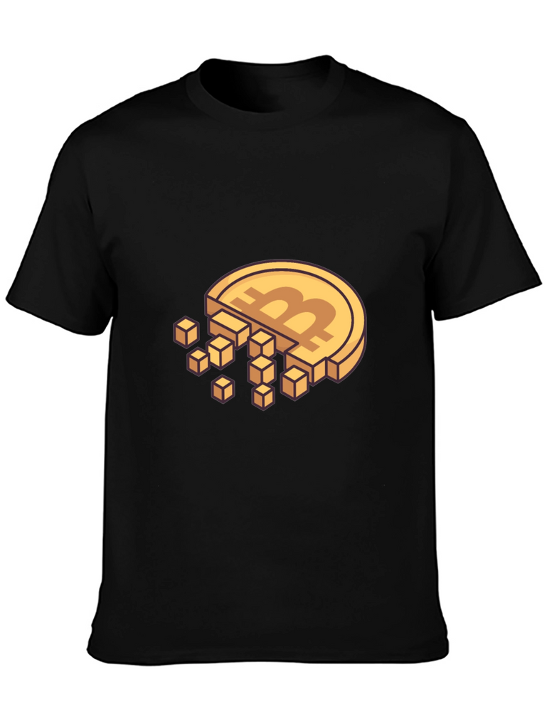 Show your love for cryptocurrency with this eye-catching Bitcoin-themed t-shirt. This black tee features a unique design: a classic Bitcoin coin gradually disintegrating into pixelated cubes. The golden coin and pixel design stand out boldly against the dark background. Crafted from comfortable materials, this shirt is perfect for casual wear and crypto meetups. Ideal for blockchain enthusiasts and tech lovers, it's a stylish way to express your interest in digital currency. Grab this unique tee and let everyone know you're part of the crypto revolution!