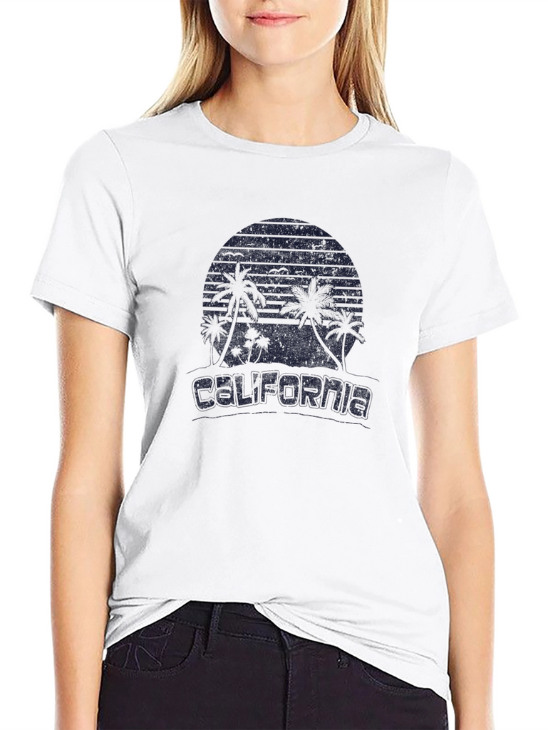 Show your love for the Golden State with this stylish black t-shirt. The shirt features a graphic design with palm trees and the word 'CALIFORNIA'. Made from a comfortable, breathable fabric, this tee is perfect for everyday wear, casual outings, or vacation adventures. Pair it with jeans, shorts, or a skirt for a relaxed, cool look. It's a great way to add a touch of California vibe to your wardrobe.