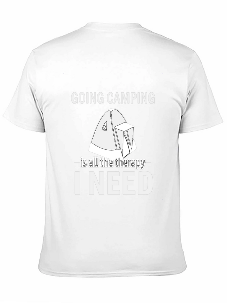 Embrace the great outdoors with this stylish and comfortable black t-shirt. Featuring a unique design that reads "Going Camping is all the therapy I need," this tee is perfect for outdoor enthusiasts and adventure seekers. The graphic includes a white tent image that adds to its camping theme. Made from a soft, breathable fabric, this t-shirt provides all-day comfort whether you're hitting the trails, relaxing at the campsite, or simply running errands around town. Show off your love for nature and the therapeutic power of camping with this must-have tee!