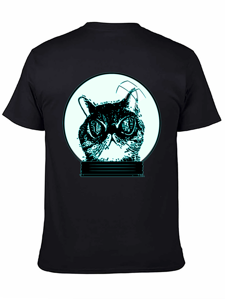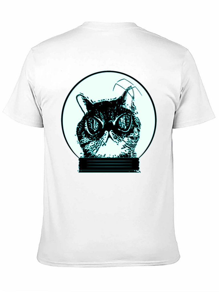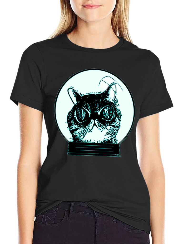 Rock this unique black t-shirt featuring an eye-catching graphic of a cat inside a light bulb. The design boasts a retro, neon-inspired style, giving it a modern edge. Made from comfortable, breathable fabric, this tee is perfect for everyday wear. Show off your love for cats and distinctive style with this standout piece. It's ideal for casual outings, concerts, or lounging at home. A great conversation starter and a must-have addition to any wardrobe. Durable and easy to care for, this shirt will keep you looking stylish and feeling great.