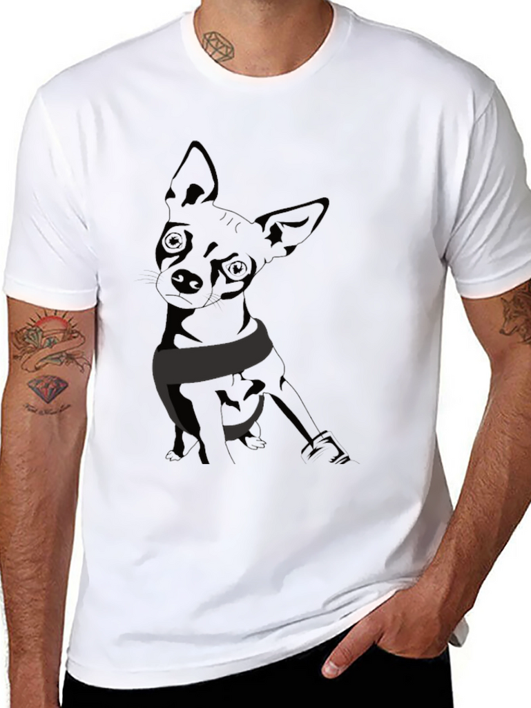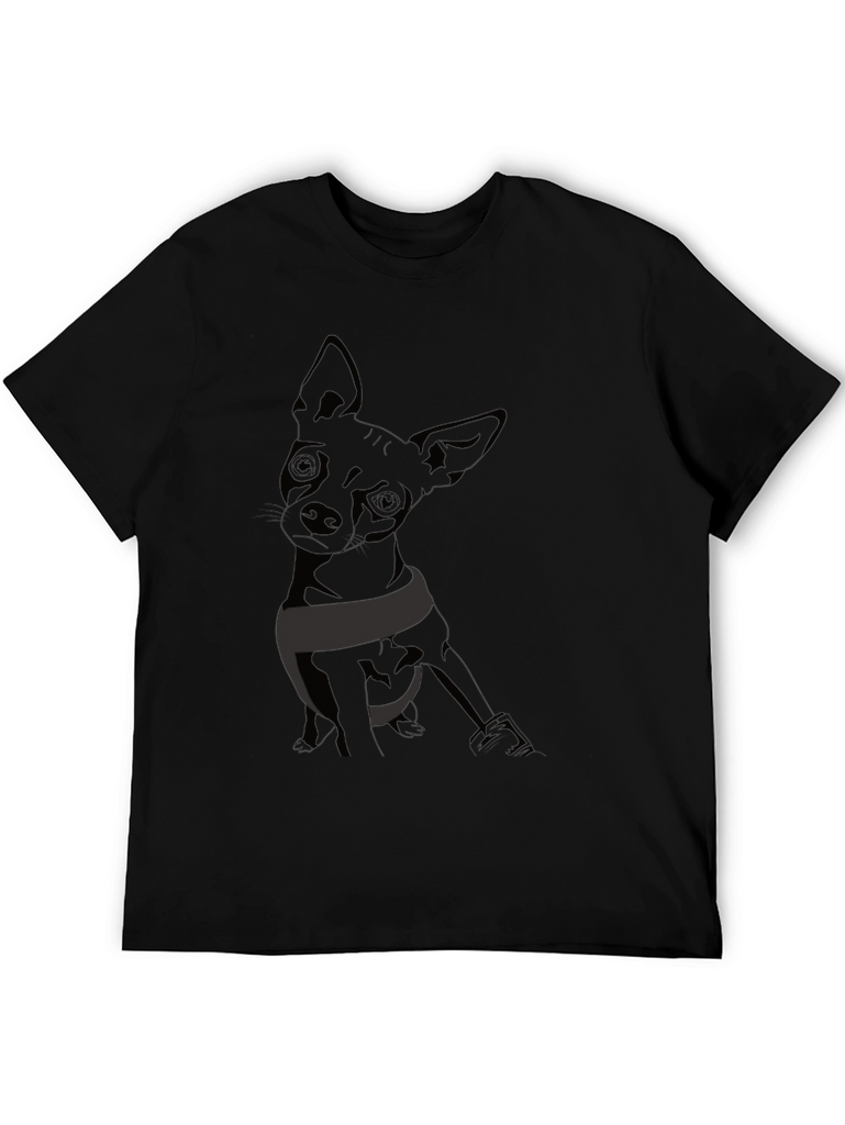 Show off your love for Chihuahuas with this stylish men's black t-shirt. The tee features a detailed graphic print of a cute Chihuahua, complete with expressive eyes and a playful pose. Made from comfortable, breathable fabric, this shirt is perfect for everyday wear. Whether you're running errands, hanging out with friends, or simply relaxing at home, this Chihuahua tee is sure to turn heads and spark conversations. Get yours today and let your passion for pups shine!