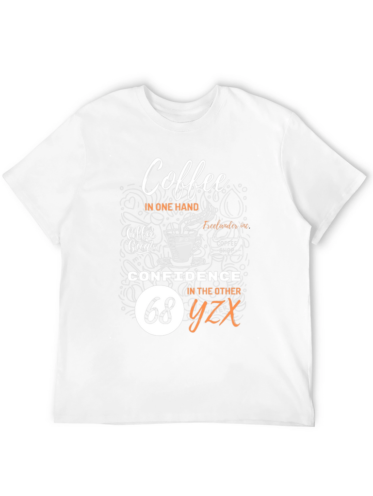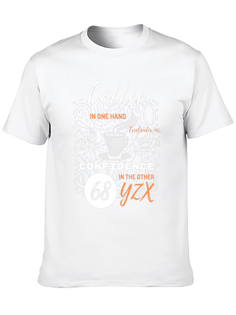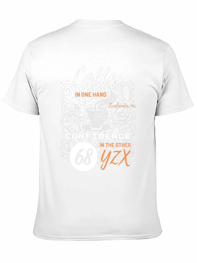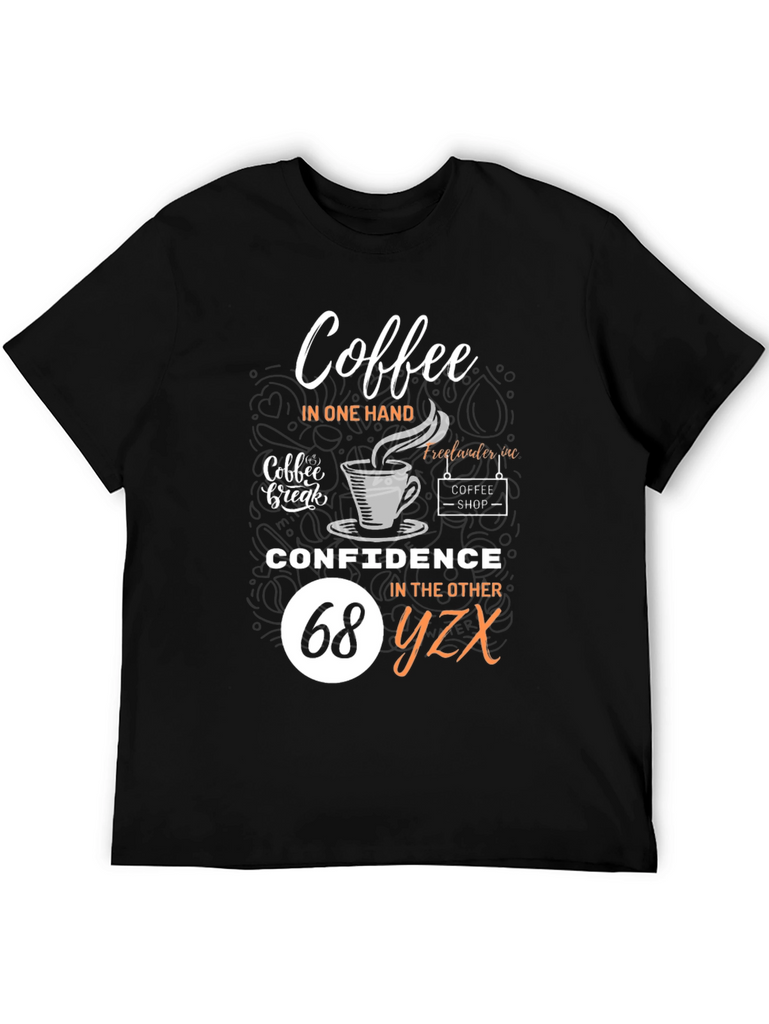 Embrace your dual loves with this fun and stylish black t-shirt! Featuring a clever design that reads "Coffee in one hand, Confidence in the other", it's perfect for coffee lovers who tackle their day with assurance. The graphic includes coffee cup imagery and 'coffee shop' detailing for added charm. Comfortable and eye-catching, this tee is ideal for casual outings, coffee dates, or simply expressing your personality. Show off your unique style and positive attitude with this must-have wardrobe addition!