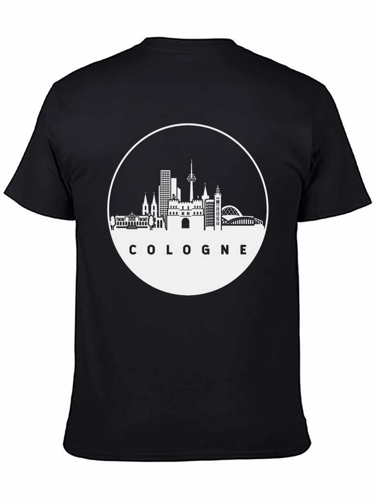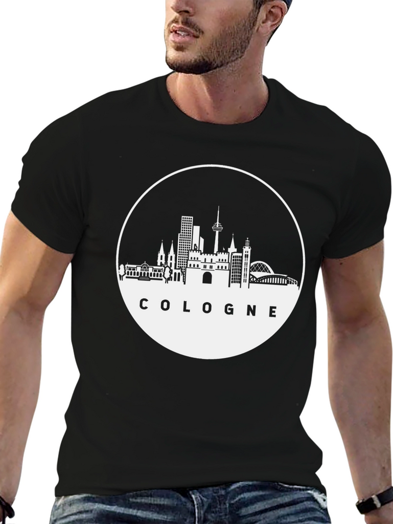 Show off your love for Cologne with this stylish black t-shirt! Featuring a striking white graphic of the city's iconic skyline enclosed in a circle, complete with the city's name, this tee is perfect for locals and tourists alike. The design is printed on a soft, comfortable black fabric, ideal for casual wear. Whether you're strolling through the city, meeting up with friends, or simply relaxing at home, this t-shirt will let you rep your favorite place. A great gift for Cologne enthusiasts or anyone who appreciates cool graphic tees!