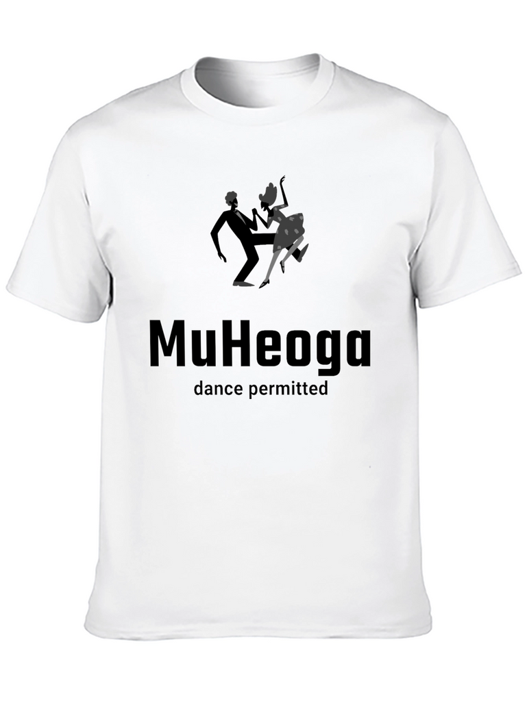 Show off your love for dance with this stylish black graphic tee. The shirt features a silhouette of a dancing couple, perfect for expressing your passion. Made from comfortable fabric, this t-shirt is ideal for casual wear, dance events, or just lounging around. With the words "MuHeoga" and "dance permitted" subtly displayed, it's a unique and eye-catching design. A great gift for dancers and dance enthusiasts alike.