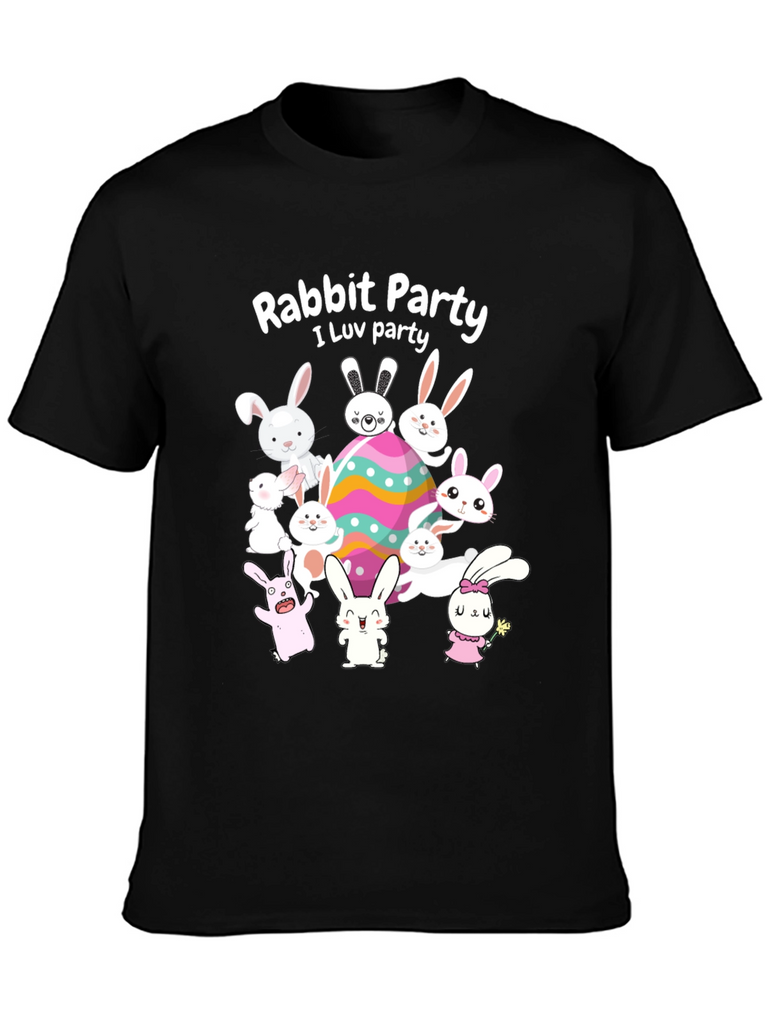 Hop into the Easter spirit with this adorable "Rabbit Party" t-shirt. Featuring a vibrant design with a cluster of cute bunnies and a colorful Easter egg, this tee is perfect for festive celebrations. Made from comfortable, breathable fabric, it ensures a cozy fit for all-day wear. The playful graphic and classic crew neck make it a fun and stylish choice for Easter egg hunts, family gatherings, or casual outings. Show off your love for the holiday with this unique and eye-catching t-shirt, spreading joy wherever you go.
