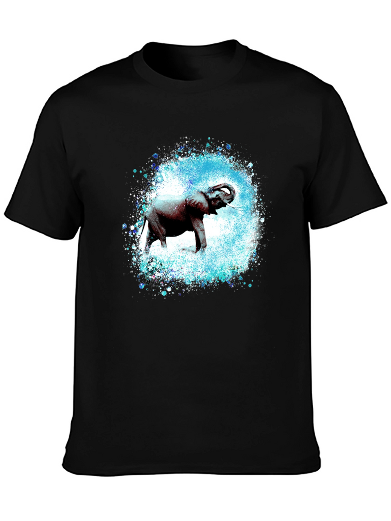 Show your love for wildlife with this unique black t-shirt. Featuring a vibrant, artistic elephant graphic with a dynamic blue splash effect, this tee is sure to turn heads. Made from soft and breathable cotton, it offers both style and comfort for everyday wear. The striking design makes it a perfect conversation starter and a great way to express your individuality. Ideal for casual outings, nature lovers, or anyone who appreciates eye-catching apparel. Add a touch of the wild to your wardrobe!