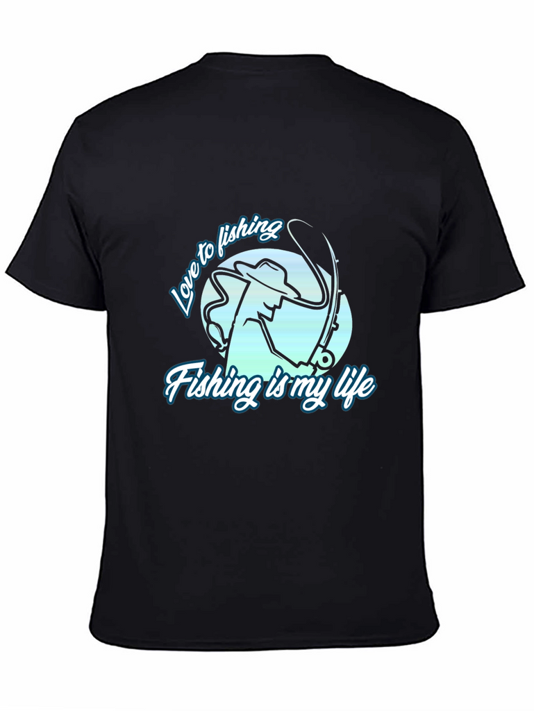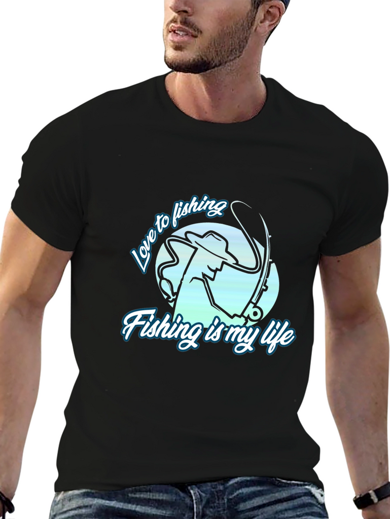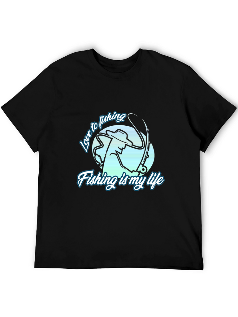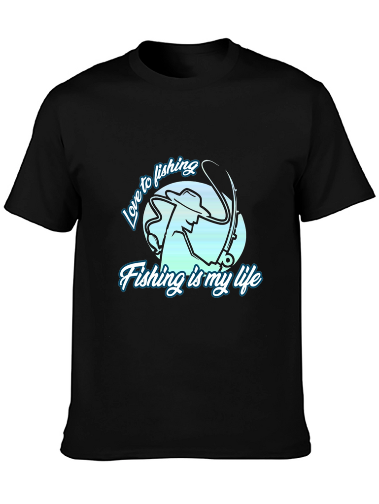 Show off your passion for angling with this stylish black t-shirt. Featuring a unique graphic design with a fisherman and the words "Love to fishing, Fishing is my life," this tee is perfect for any fishing enthusiast. Made from a comfortable and breathable fabric, it ensures all-day comfort whether you're casting lines at the lake or hanging out with friends. The design is eye-catching, making it a great conversation starter and a perfect gift for the angler in your life. Available in various sizes, it is the ideal casual wear for fishing trips, outdoor adventures, or simply expressing your love for the sport.