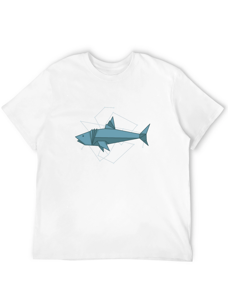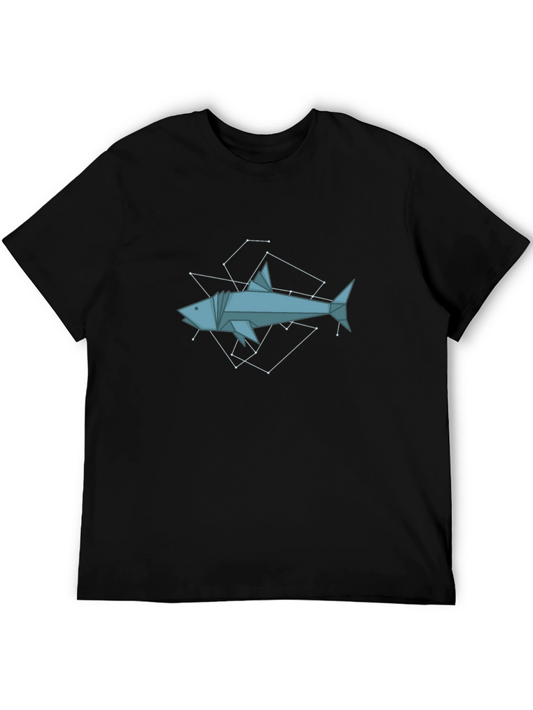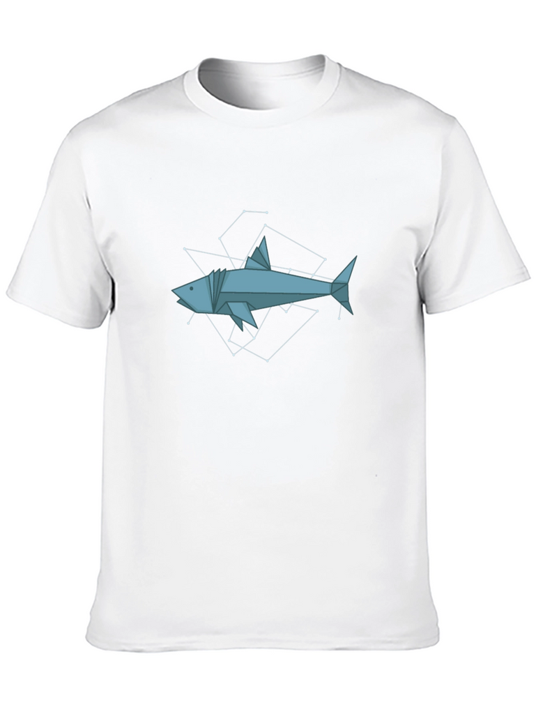 Show off your unique style with this eye-catching black t-shirt. Featuring a stylized, geometric shark design, this tee is perfect for anyone who loves modern art and marine life. The light blue shark graphic is surrounded by connecting geometric lines, adding a touch of intrigue. Made from comfortable, breathable fabric, it's ideal for everyday wear. Dress it up or down; this shirt is sure to turn heads and spark conversations. Perfect for casual outings, concerts, or just lounging around. Add this stand-out piece to your wardrobe today!