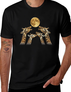 Giraffe Rose Graphic Tee - Stylish Mens Black T-Shirt