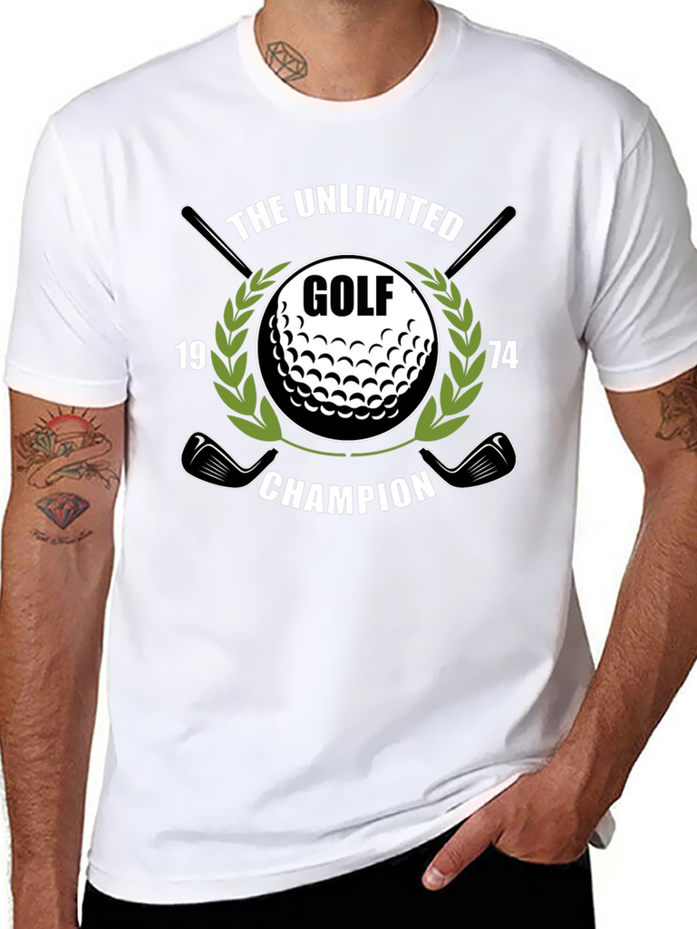 Show off your love for golf with this stylish black T-shirt! The design features a vintage-inspired graphic with "The Unlimited Golf Champion" text surrounding a golf ball and crossed clubs. Est. 1974. Made from soft, comfortable fabric, this tee is perfect for a casual day on the green or a relaxed evening out. The classic fit ensures all-day comfort and easy wear. It's a great gift for any golf enthusiast or a fun addition to your own wardrobe. Order yours today and celebrate the game!