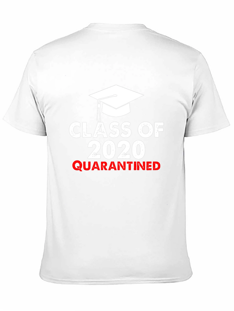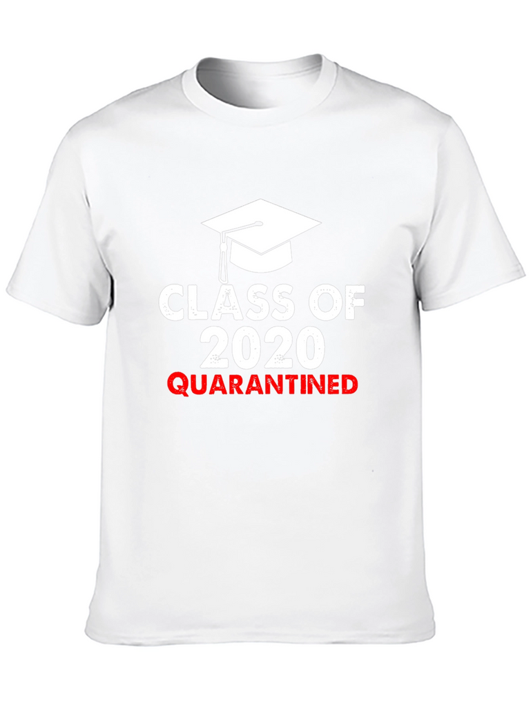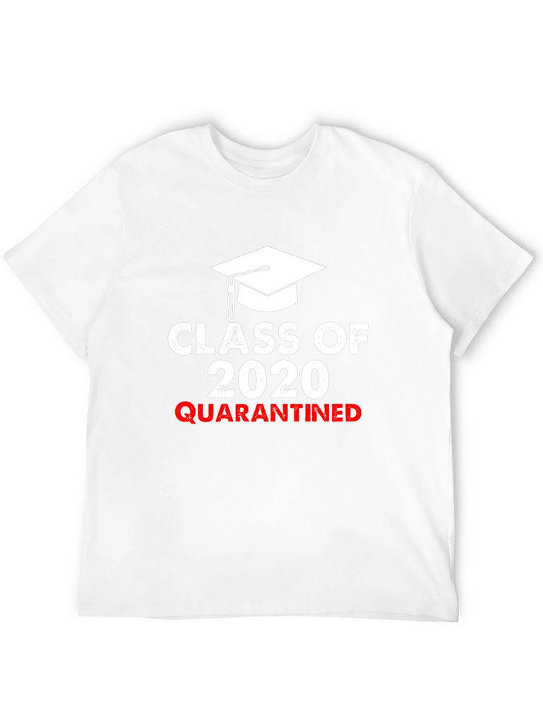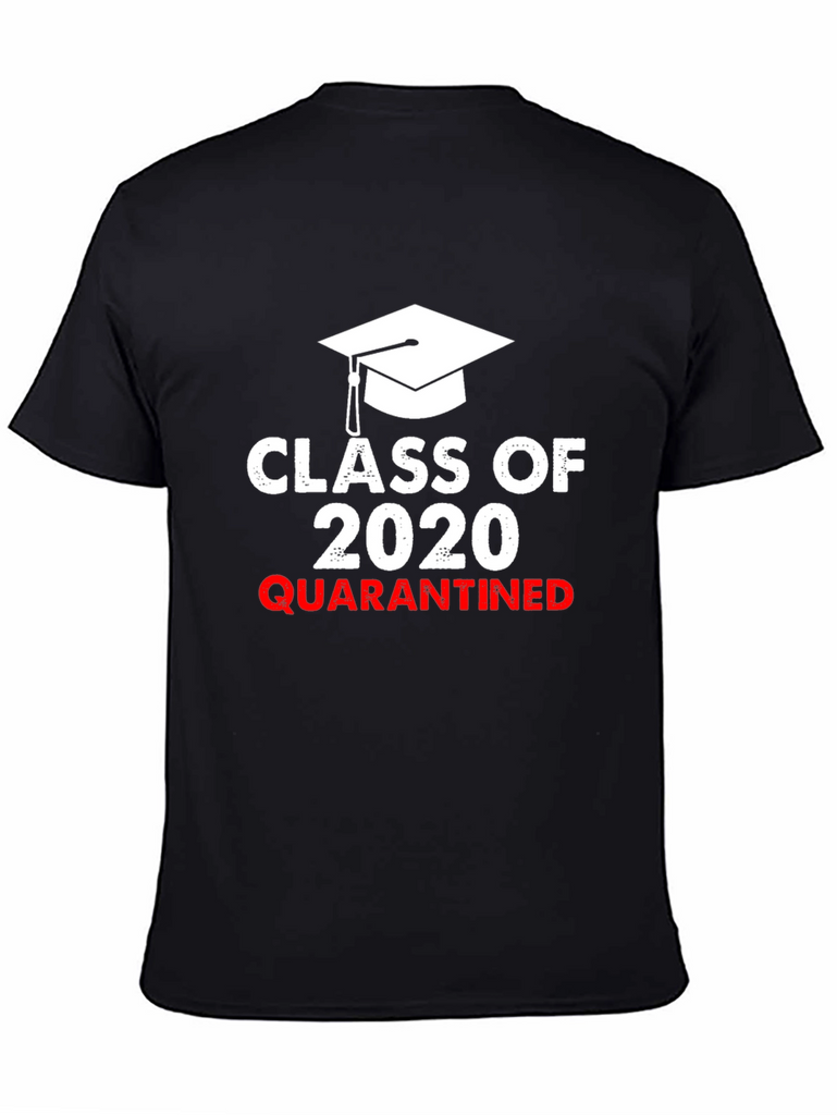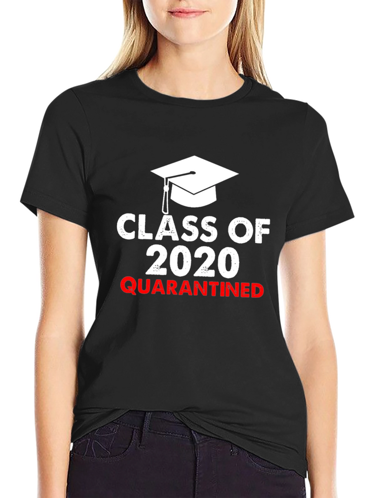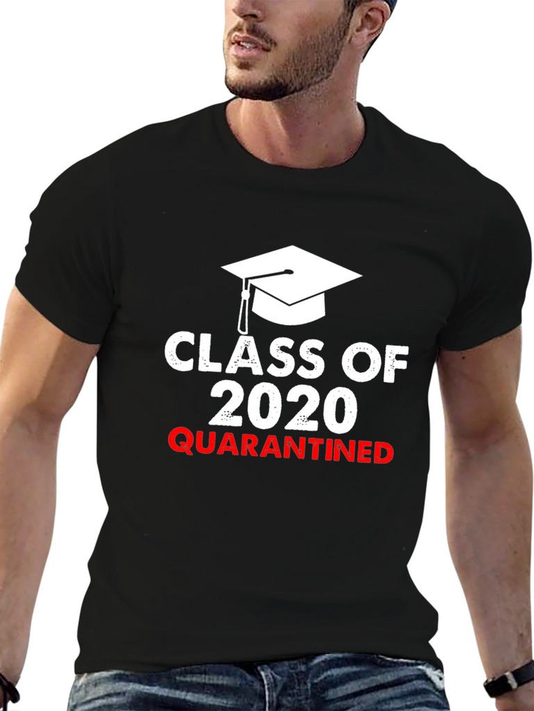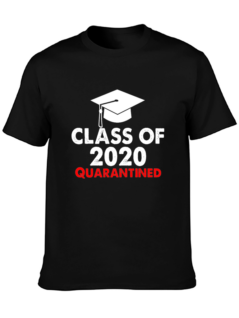 Celebrate graduation with a touch of humor with this Class of 2020 quarantined t-shirt. This black short-sleeve t-shirt features a grad cap graphic above the text. The inscription reads "CLASS OF 2020" with the word "QUARANTINED" in red underneath. Made from a comfortable-looking fabric, it's perfect for wearing to graduation parties, family gatherings, or just for everyday wear as a lighthearted reminder of a unique senior year. It’s a great gift idea for graduating seniors looking for a fun way to commemorate their achievements.