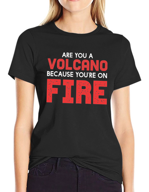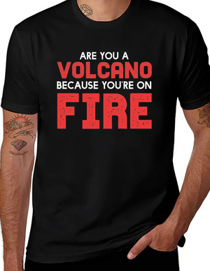 Volcano On Fire Graphic Tee - Black Cotton T-Shirt