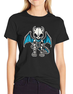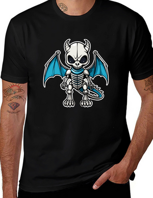 Skeleton Dragon Graphic Tee - Black Cotton Shirt