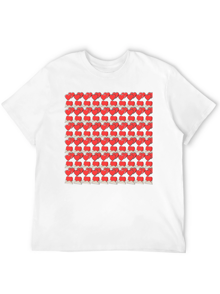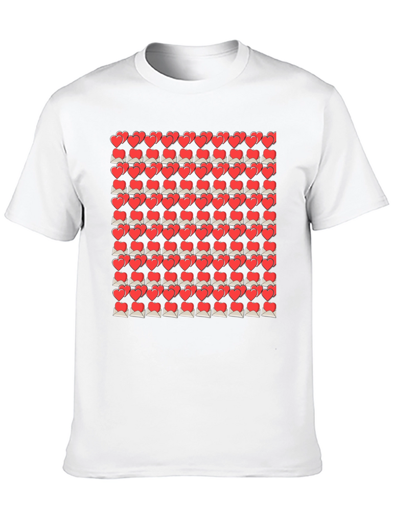 Spread the love with this eye-catching black t-shirt! The design features a repeating pattern of adorable red heart envelopes, perfect for Valentine's Day or any day you want to show some affection. Made from what appears to be soft, breathable cotton, this tee offers both comfort and style. The classic crew neck and short sleeves make it a versatile addition to any wardrobe. Pair it with jeans for a casual look or dress it up with a blazer for a fun twist. Make a statement and wear your heart on your sleeve (or rather, your chest) with this unique and charming t-shirt.