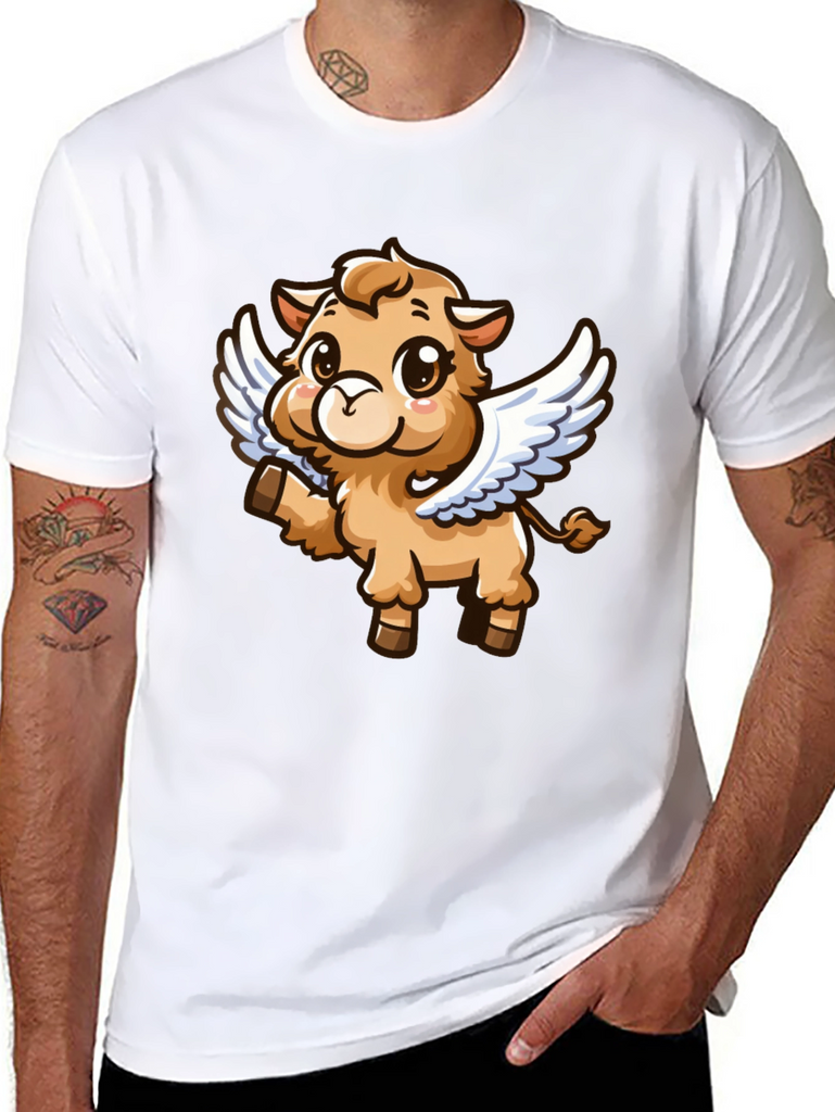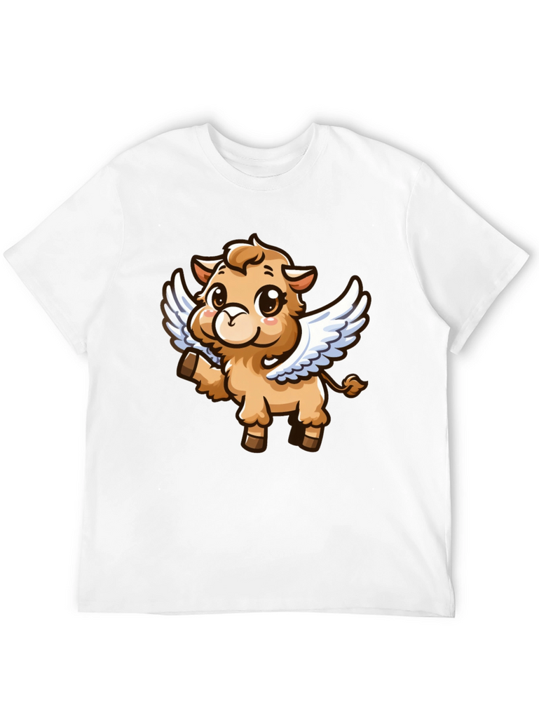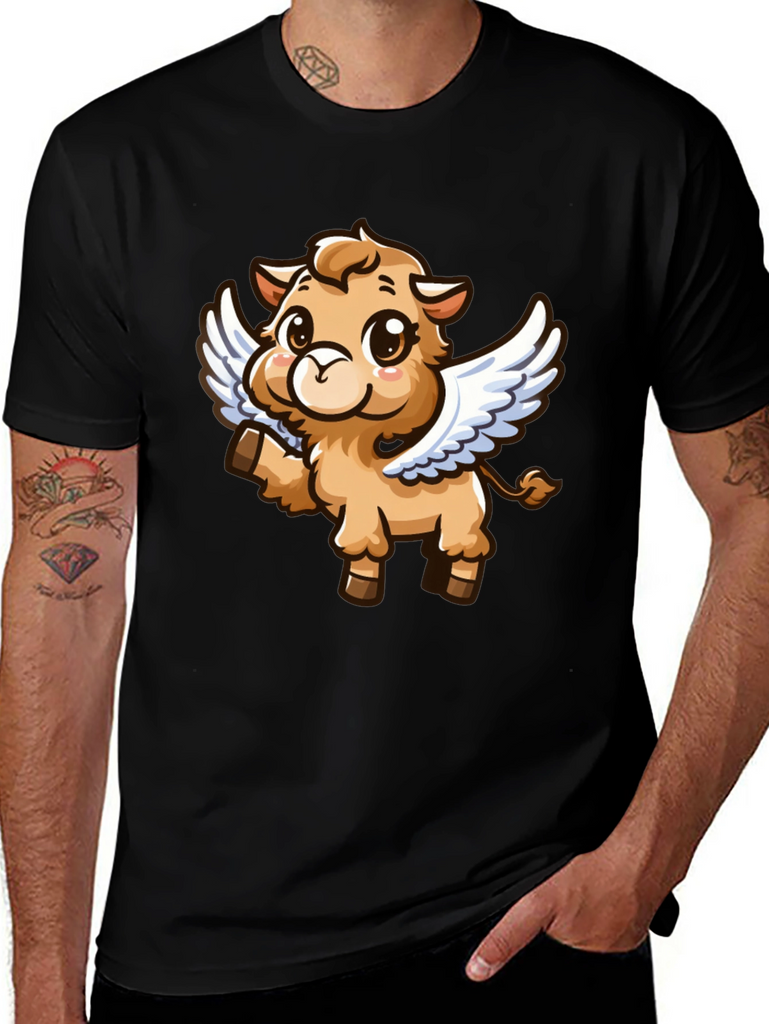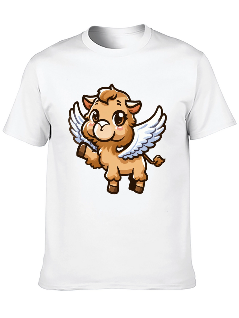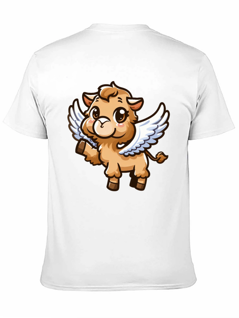 This black t-shirt features a charming cartoon llama with angel wings. The design is vibrant and eye-catching, making it a fun and unique addition to any wardrobe. Made from what appears to be a soft, comfortable cotton blend, this tee offers both style and comfort. The playful graphic is perfect for casual wear, adding a touch of whimsy to your everyday look. Ideal for llama lovers or anyone who enjoys quirky and cheerful designs. Show off your fun side with this delightful llama t-shirt.