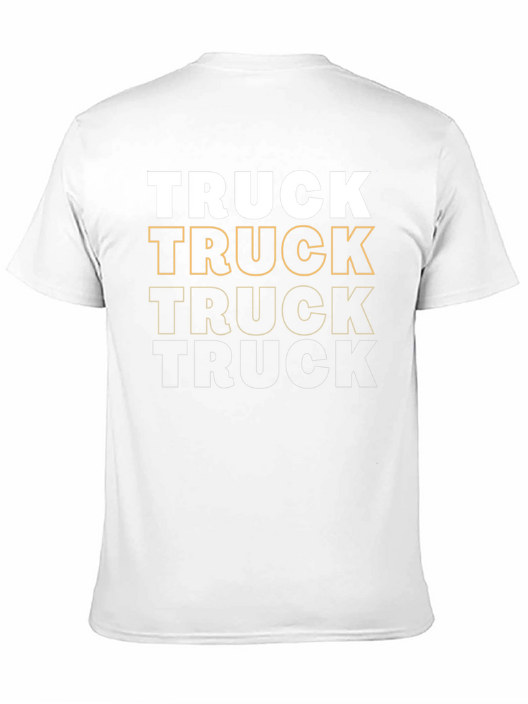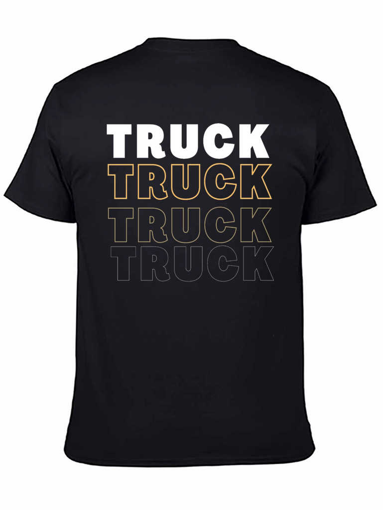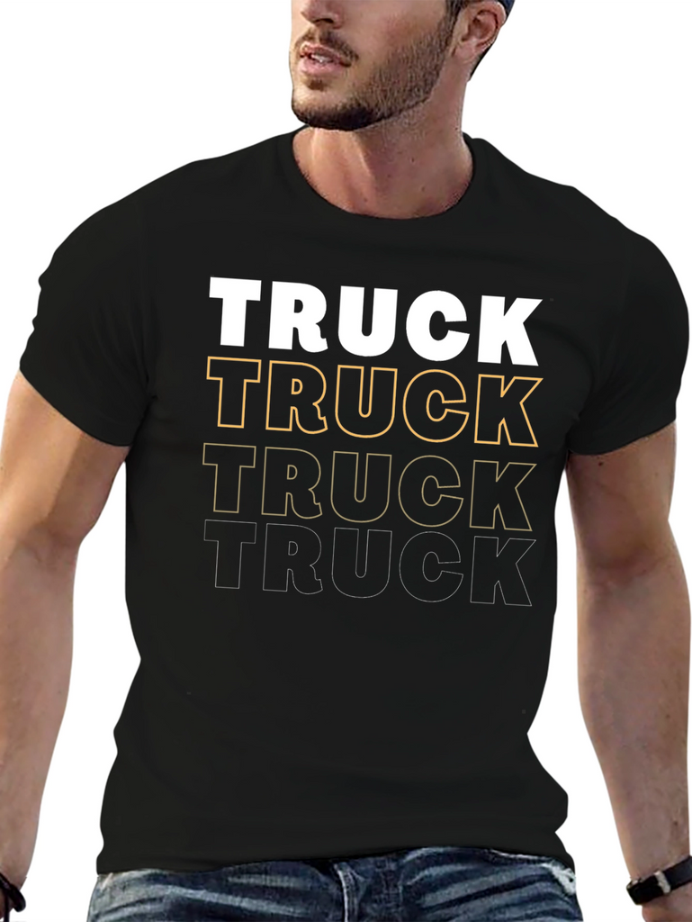 Show off your love for trucks with this stylish black t-shirt. Featuring a stacked "TRUCK" graphic in white and yellow outlined font. This eye-catching tee is perfect for casual wear, truck enthusiasts, or anyone who wants to make a statement. The shirt appears to be made from a comfortable, breathable material, making it ideal for everyday wear. Pair it with jeans or shorts for a relaxed, cool look. Great for car meets, road trips, or a fun weekend!
