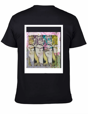 Floral Portrait Graphic Tee - Stylish Mens Black T-Shirt