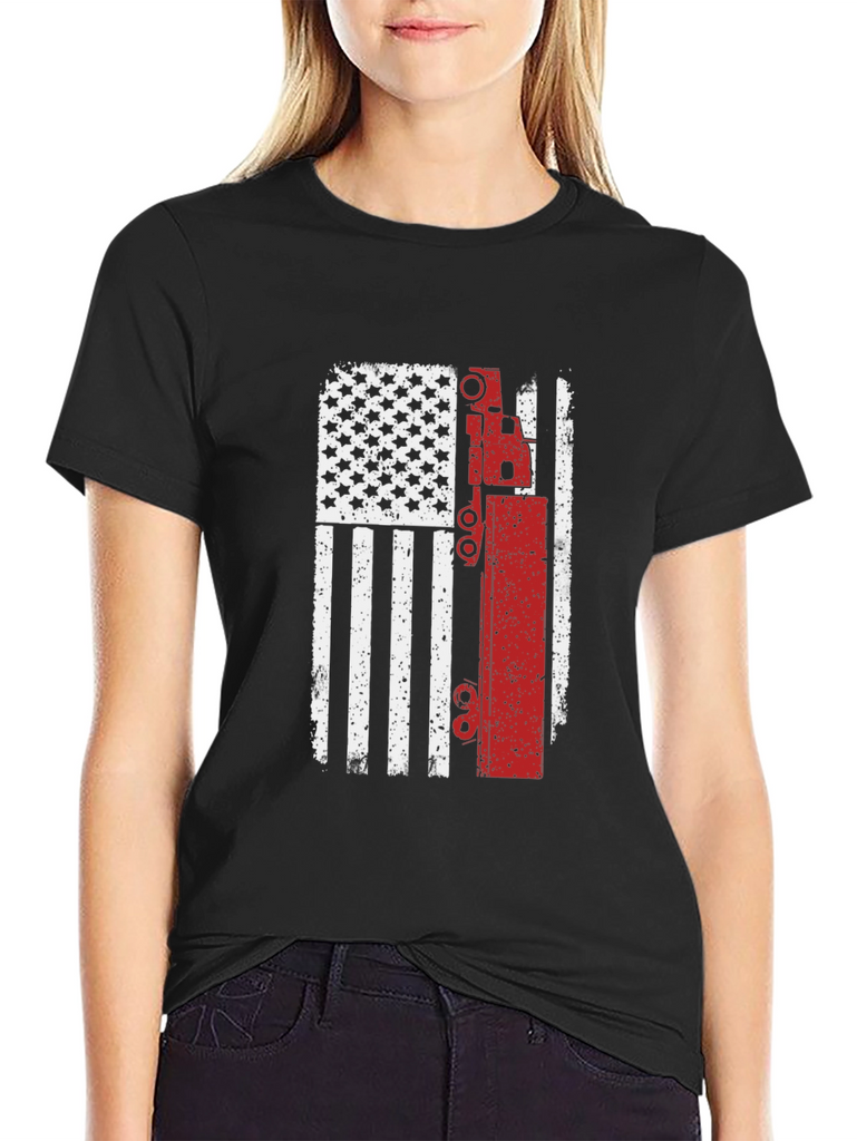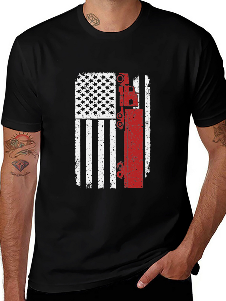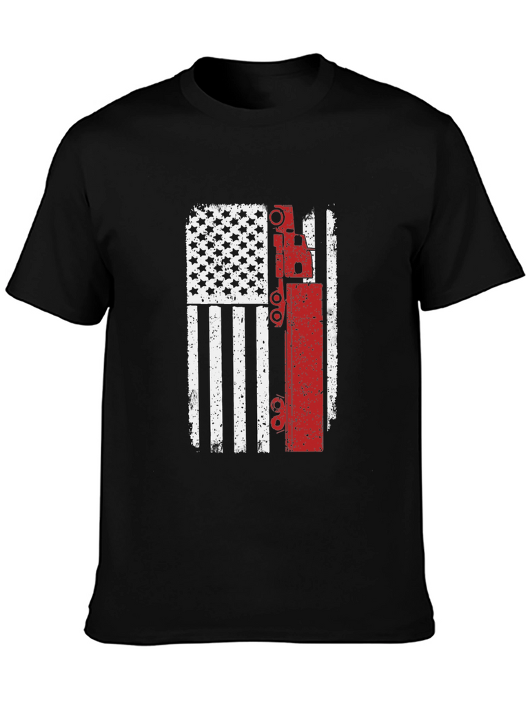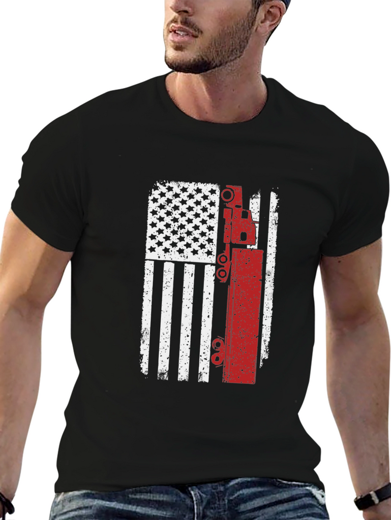 Show your patriotic pride with this unique oilfield worker t-shirt. The design features an American flag with a stylized oil rig graphic in red, making it a standout piece. Made from a comfortable, soft fabric, this tee is perfect for everyday wear, whether you're on the job or relaxing on the weekend. The classic fit ensures a relaxed and flattering silhouette. The distressed print adds a vintage touch, giving it a worn-in feel. Get yours today and showcase your support for the oilfield industry with this eye-catching and meaningful design.