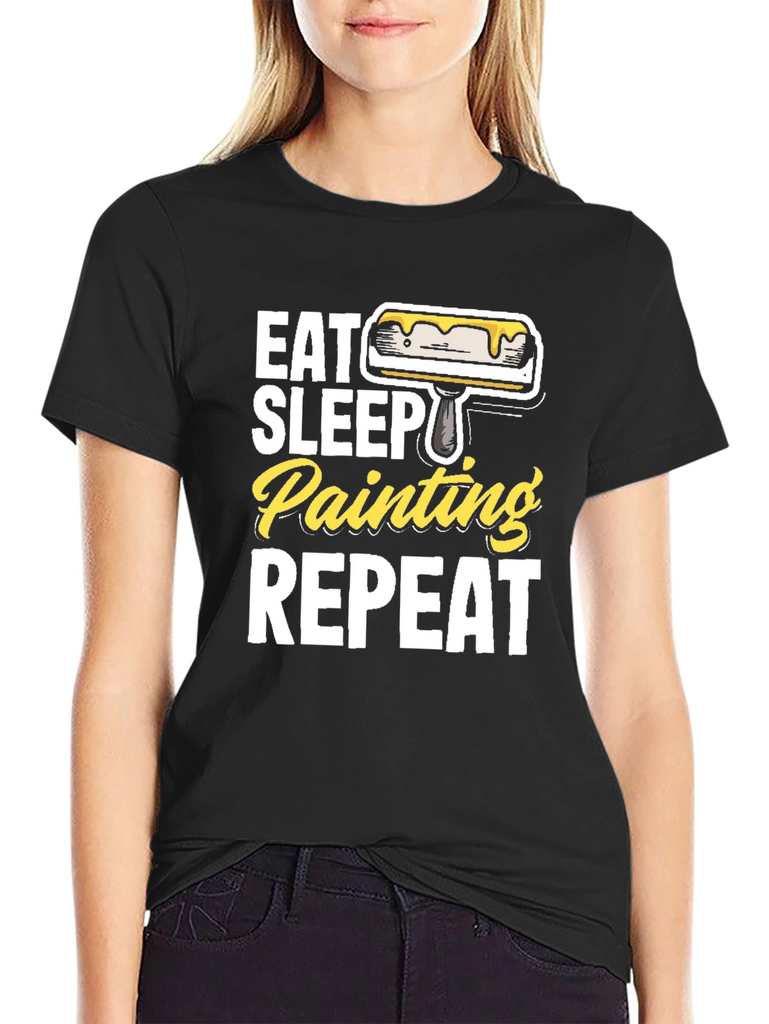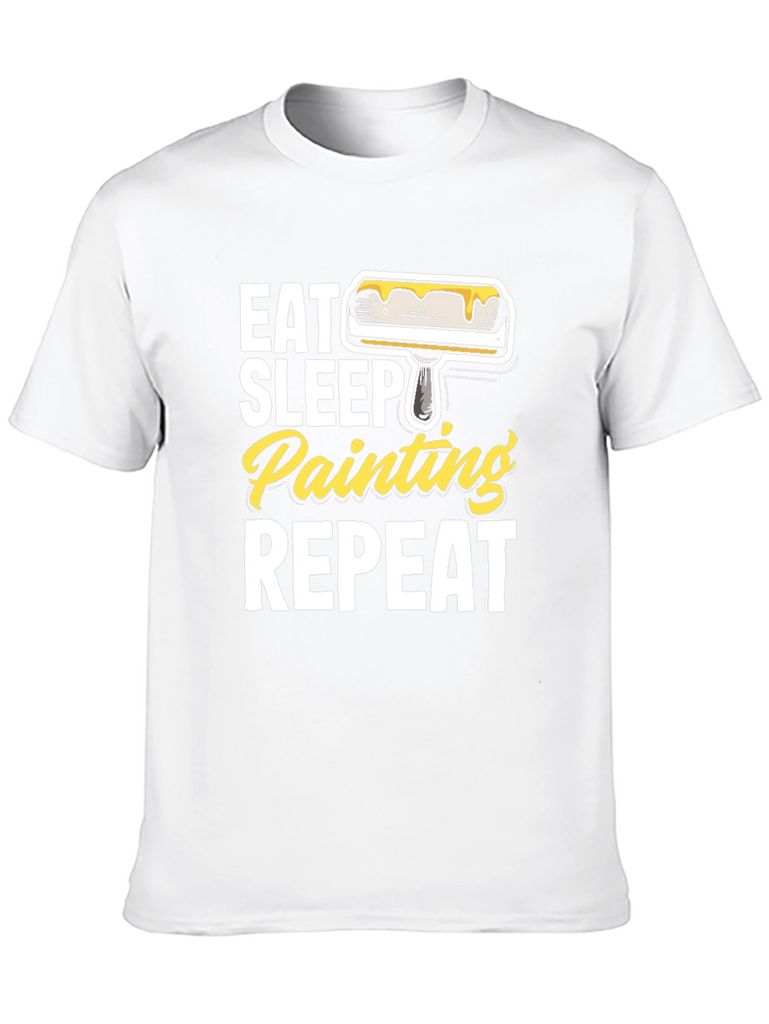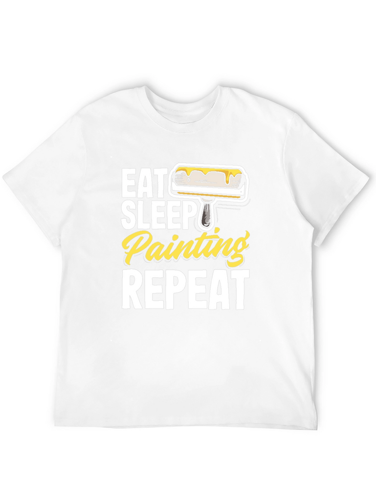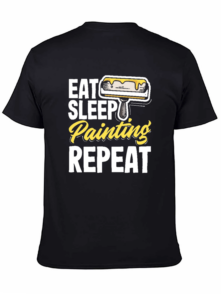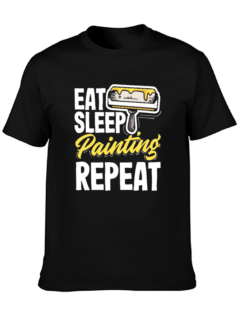 Show off your passion for painting with this fun and stylish graphic t-shirt. Made from comfortable, breathable fabric, this black tee features a bold design with the phrase "Eat Sleep Painting Repeat" in white and yellow lettering, accompanied by a paint roller graphic. The classic fit makes it perfect for everyday wear, whether you're working in the studio, running errands, or just relaxing at home. This t-shirt is a great gift for artists, hobbyists, or anyone who loves to paint. Get yours today and express your creative spirit!
