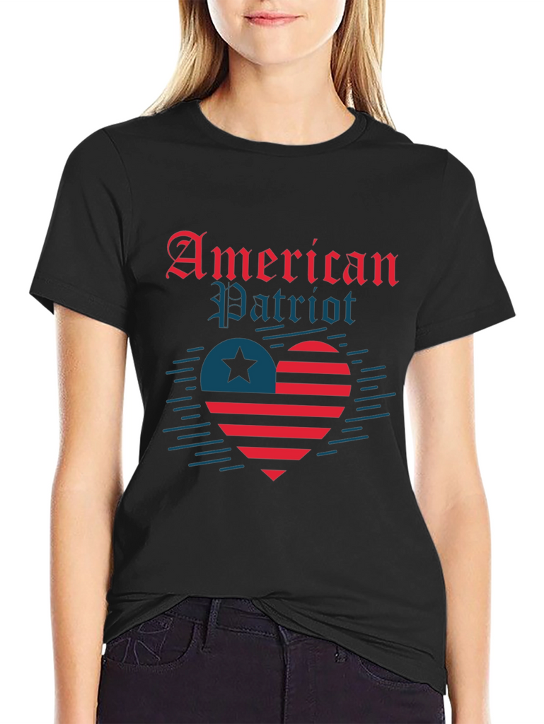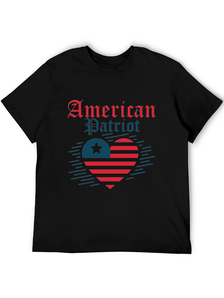 Show your patriotic pride with this bold "American Patriot" t-shirt. Featuring a unique heart design incorporating the American flag elements, including stripes and a star, this shirt is perfect for celebrating Independence Day or expressing your love for the USA. The design is eye-catching and stylish, set against a classic black t-shirt. Made from a comfortable fabric, this tee is ideal for casual wear, parades, cookouts, or any event where you want to display your American spirit. Make a statement and wear your patriotism with pride!