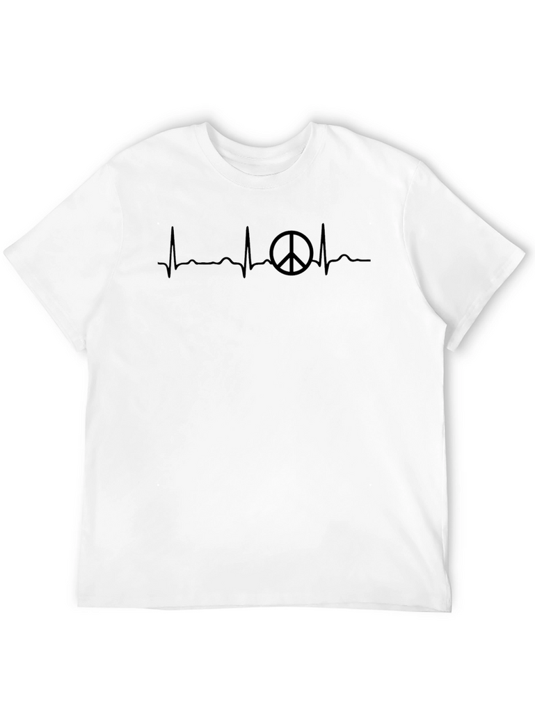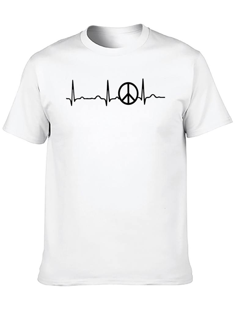 Show your love for peace with this unique t-shirt! This stylish black tee features a creative heartbeat line design incorporating a peace sign, perfect for making a statement. The shirt appears to be made from a soft, comfortable material. Ideal for everyday wear, casual outings, or as a thoughtful gift for peace activists and anyone who wants to spread positive vibes. Add this conversation-starter to your wardrobe today!