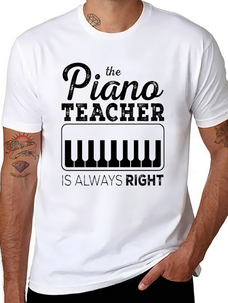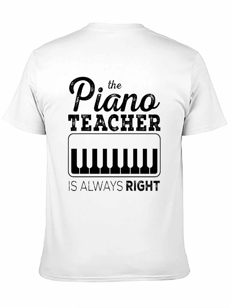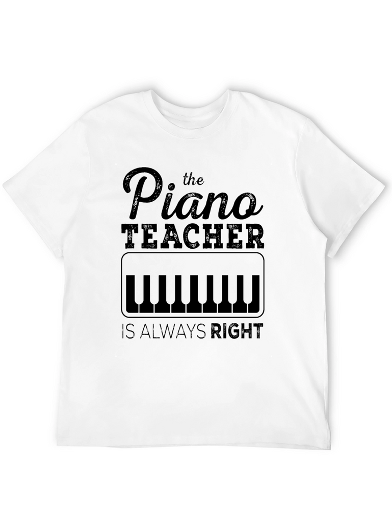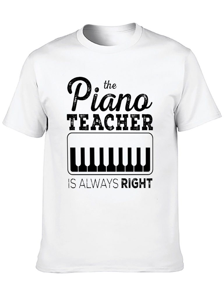 Show your appreciation for the musical maestros with this stylish "The Piano Teacher is Always Right" T-shirt. This classic black tee features a clever graphic design with piano keys, making it the perfect gift for instructors. Made from soft, comfortable fabric, it’s ideal for everyday wear, music lessons, or casual outings. Let the world know that when it comes to music, the piano teacher always knows best. This t-shirt is a must-have for anyone involved in music.